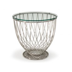 Claudius Coffee Table with a woven effect stainless steel frame and a tempered glass top.