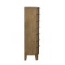 Raffles Seven Drawer Tall Chest is crafted from reclaimed and recycled wood in a warm, silky, sundried wheat finish. The subtle scratches, cracks and colour variation make each piece unique. The overall finish is created by hand polishing and brushing each piece with high-quality environmentally friendly oils to create & enhance a genuine aged patina. Brass scroll metal handles provide the finishing touch for this very distinctive bedroom collection.