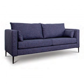 The frame is made from solid pine and plywood. The seat base frame is mounted with no-sag springs, the cushion is constructed with fire-retardant foam, and the back cushion is carded fibre. The seat and back cushions are reversible. Sleek black legs give a minimalist style.