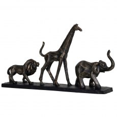 A wonderful safari wild animals sculpture on a black plinth base finished in a gold resin.